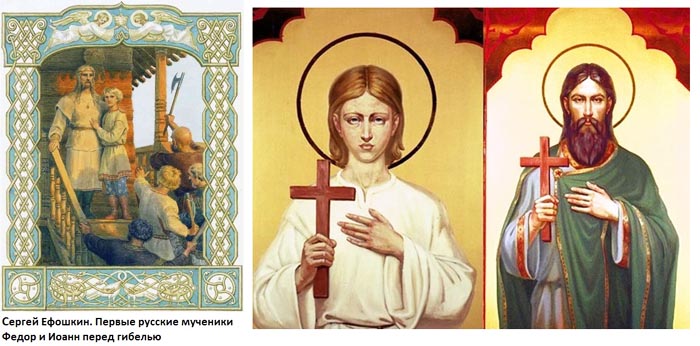 Вслед за празднованием в честь первой русской княгини-христианки Ольги, русская церковь воспоминает и страдание христианских первомучеников русских Феодора варяга и сына его Иоанна, в Киеве (983 г.)